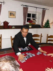 Poker Ihre Gäste erhalten Spielgeld, wenn Sie wünschen, mit Ihrem Firmen- Logo zu Beginn der Poker Veranstaltung. Das Spielgeld wird beim Croupier oder den Candy Girls gegen Jetons eingetauscht. Wir empfehlen Ihnen, kleine Preise für die Gewinner bereitzustellen. Möglich ist allerdings auch, daß der beste Spieler des Abends einen attraktiven Preis erhält - z.B. eine Fahrt im Rolls Roys oder Candle Light Dinner.